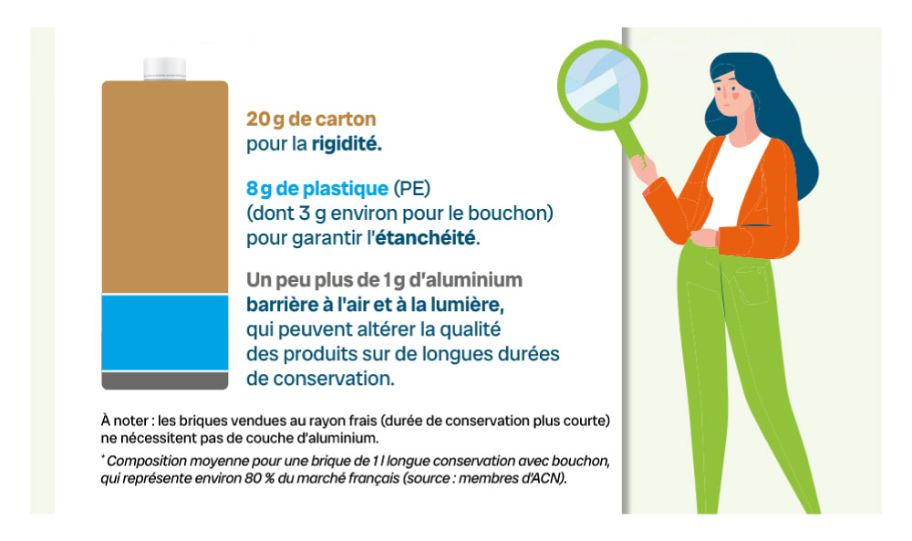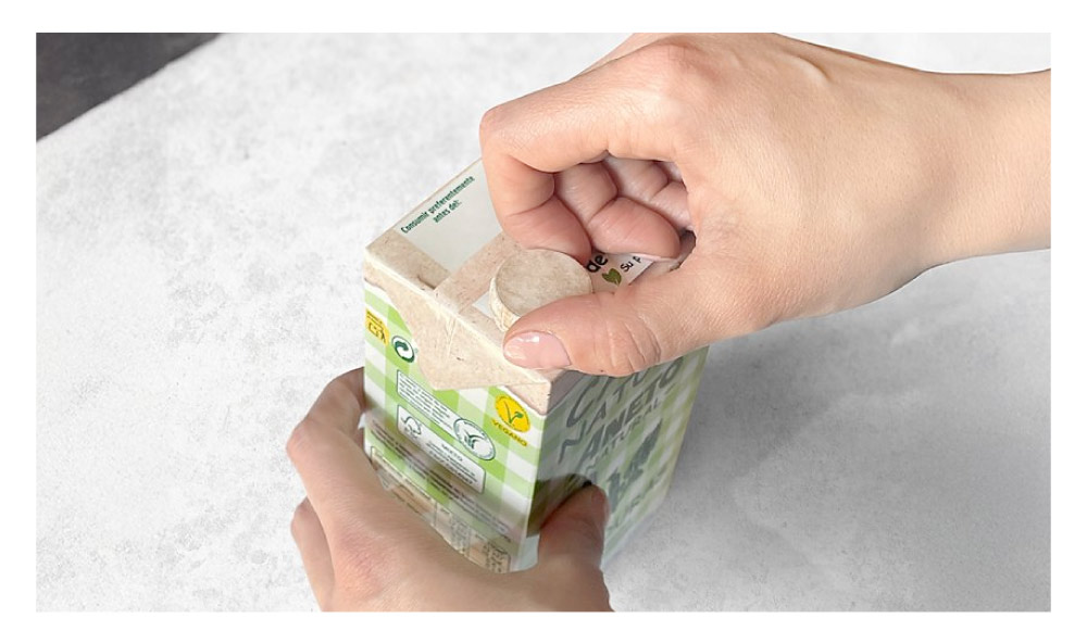 Le bouchon représente à lui seul une part non négligeable du plastique des briques et son remplacement par une fermeture à base de fibres permettrait de faire monter à 73% en poids la part de papier-carton recyclable. Combiné à l’utilisation de polymères d’origine végétale pour le revêtement et le col d’ouverture l’ensemble passerait ainsi à 87% en poids de contenu biosourcé.