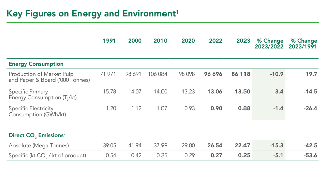 Comme le montre le tableau ci-dessous, les émissions de CO₂ spécifiques (c’est-à-dire par tonne produite) du secteur ont diminué de plus de 50 % entre 1991 et 2023, avec une baisse continue chaque année. Une performance remarquable qui témoigne d’un découplage réussi entre croissance de la production et atténuation de l’impact climatique.